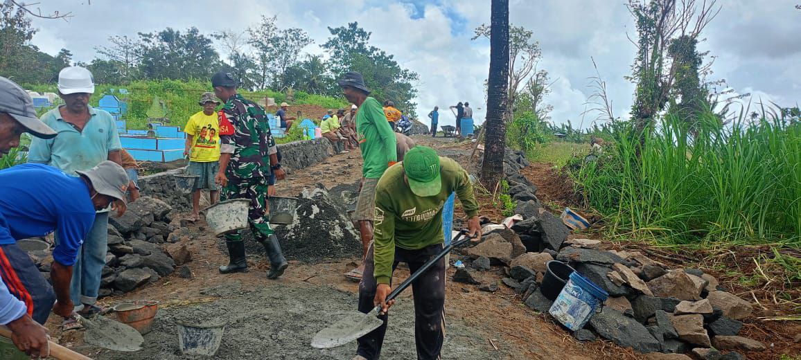 Kegiatan ini merupakan bentuk kepedulian TNI terhadap kondisi lingkungan serta kebutuhan masyarakat, khususnya dalam menjaga dan memperkuat infrastruktur pemakaman yang menjadi fasilitas umum bagi warga.